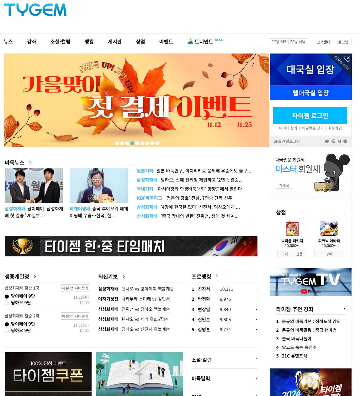 타이젬 바둑은 대한민국의 대표적인 온라인 바둑 플랫폼으로, 전 세계 바둑 팬들에게 인기 있는 서비스입니다. 초보자부터 프로기사까지 누구나 쉽게 이용할 수 있는 플랫폼으로, 바둑을 두거나 관전하고, 학습 자료를 통해 실력을 키울 수 있는 다양한 기능을 제공합니다.